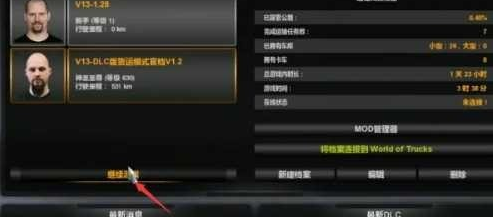 1.进入游戏后,左边菜单栏选择货运模式官档V1.2,右边菜单栏点击“MOD管理器”。