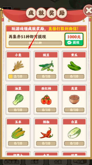 2、只要种植足够数量的蔬菜就能获得相关奖励