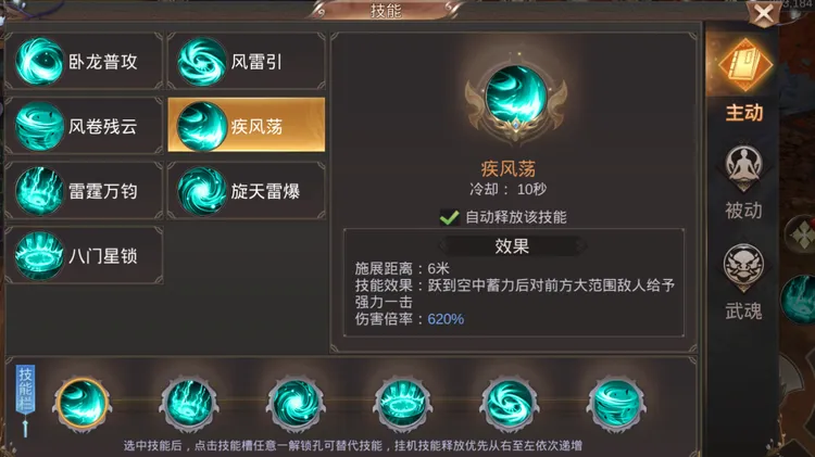 技能效果:召唤飓风将周围的敌人卷入,造成多段伤害