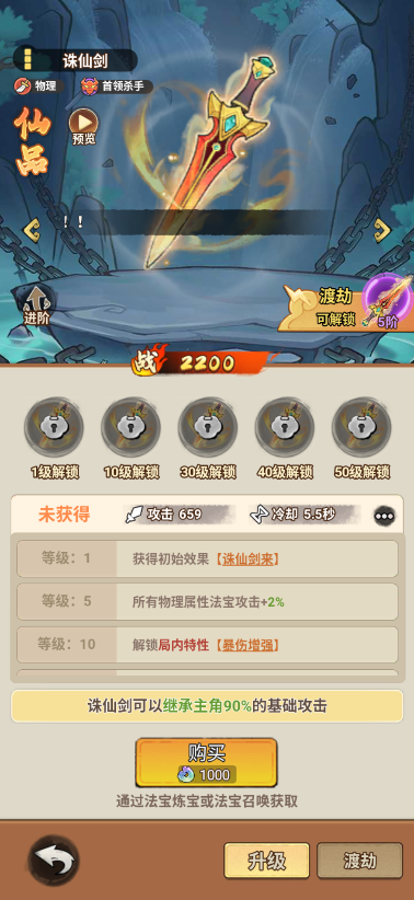 发射诛仙剑,对随机单个目标造成物理伤害,诛仙剑暴击率+25%