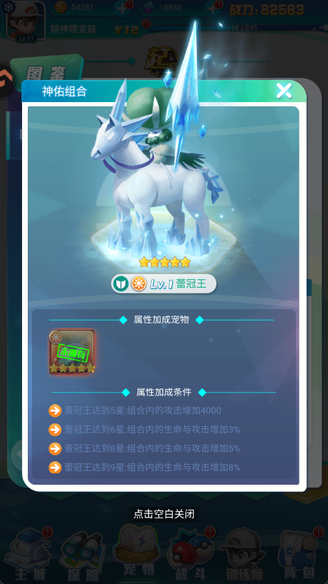 守护精灵奇迹是一款很受欢迎的放置卡牌类的手机游戏。游戏是以口袋妖怪为背景的,在游戏内玩家将会扮演一位训练师的,然后与精灵们组成小队的,然后去扩充自己的势力的,就可以有机会去van与挑战大赛了。游戏是有着轻松的直观的操作方式的,你需要收集宠物图鉴去打造强大的战队的。游戏也会有十分丰富的副本的,还有着神兽公园等你来参与探索的,是非常适合不同的玩家参与的。想畅玩就点击它下载吧。