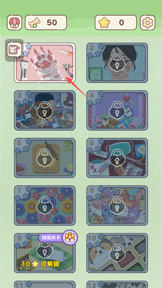 1、进入整理来解压游戏,先进行每日签到可领取骨头,骨头可用于跳过关卡