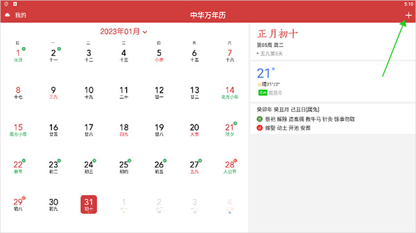 中历万年历软件免费版日历是我们在生活中经常需要使用的软件,这个软件的功能非常的强大的,用户可以随时在这里看每天的日期,而且还可以看到当天的天气预报和节假日的信息,而且还可以在这里安排自己的日常行程,设置自己需要的行程,并且还可以设置提醒的功能,这样就可以合理的安排自己的行程,以防忘记了,帮助大家的生活可以更加的便利哦。喜欢的朋友可以下载试试。